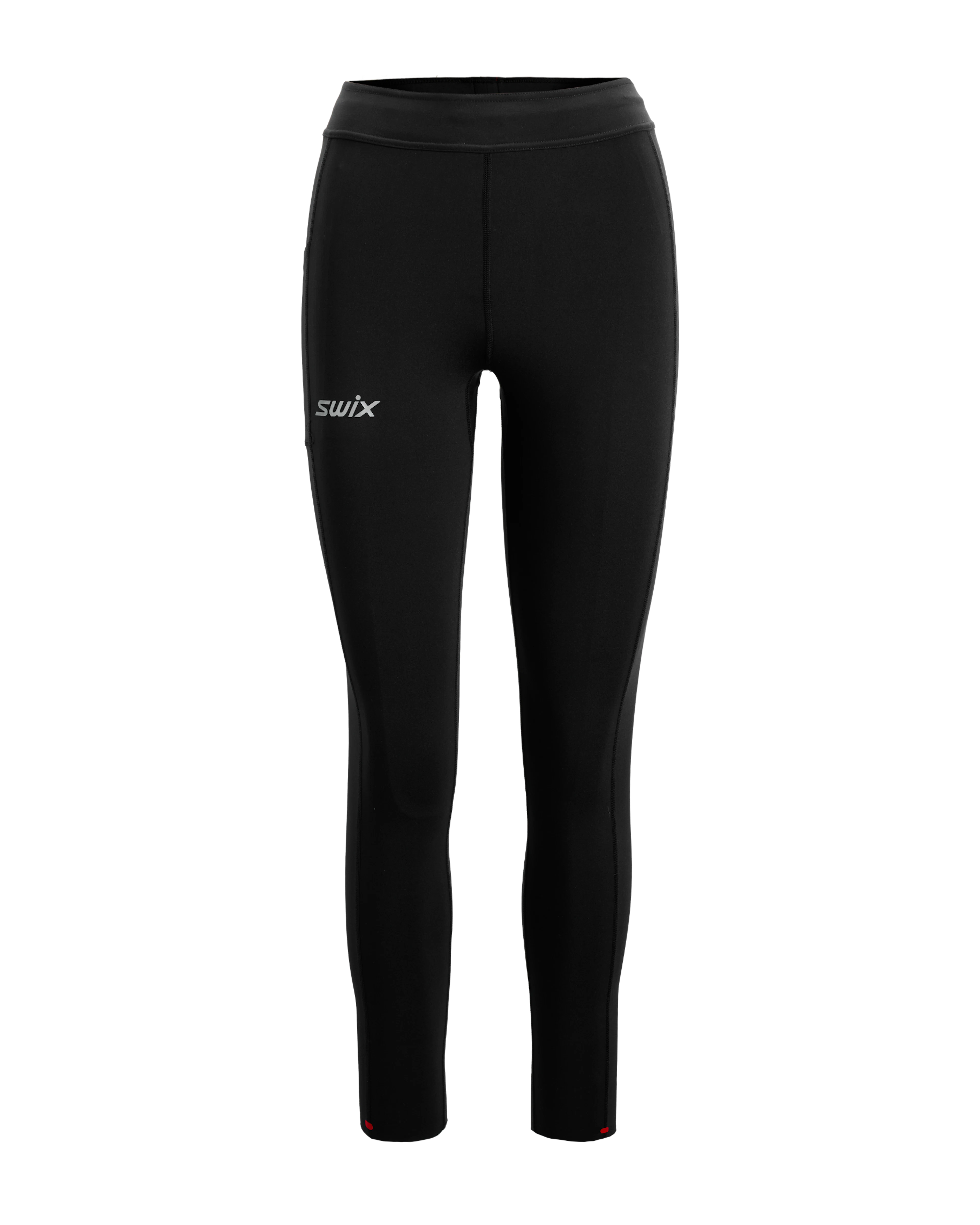 Swix Premium Running Tights W er utviklet for deg som stiller høye krav til komfort, støtte og bevegelsesfrihet. Tightsen er laget i et mykt, teknisk 4-veis stretchmateriale som følger kroppen din i hvert steg. Flate sømmer og kile i skrittet sørger for gnagsårfri komfort – selv under lange løpeturer. Den høye linningen gir både støtte og en flatterende passform, og kan justeres med en innvendig snor. Med glidelåslomme bak, sidelomme for mobil og to gel-lommer har du alt du trenger lett tilgjengelig. Råkanter og tapede detaljer gir en lett og slitesterk finish – perfekt for både harde økter og roligere dager.