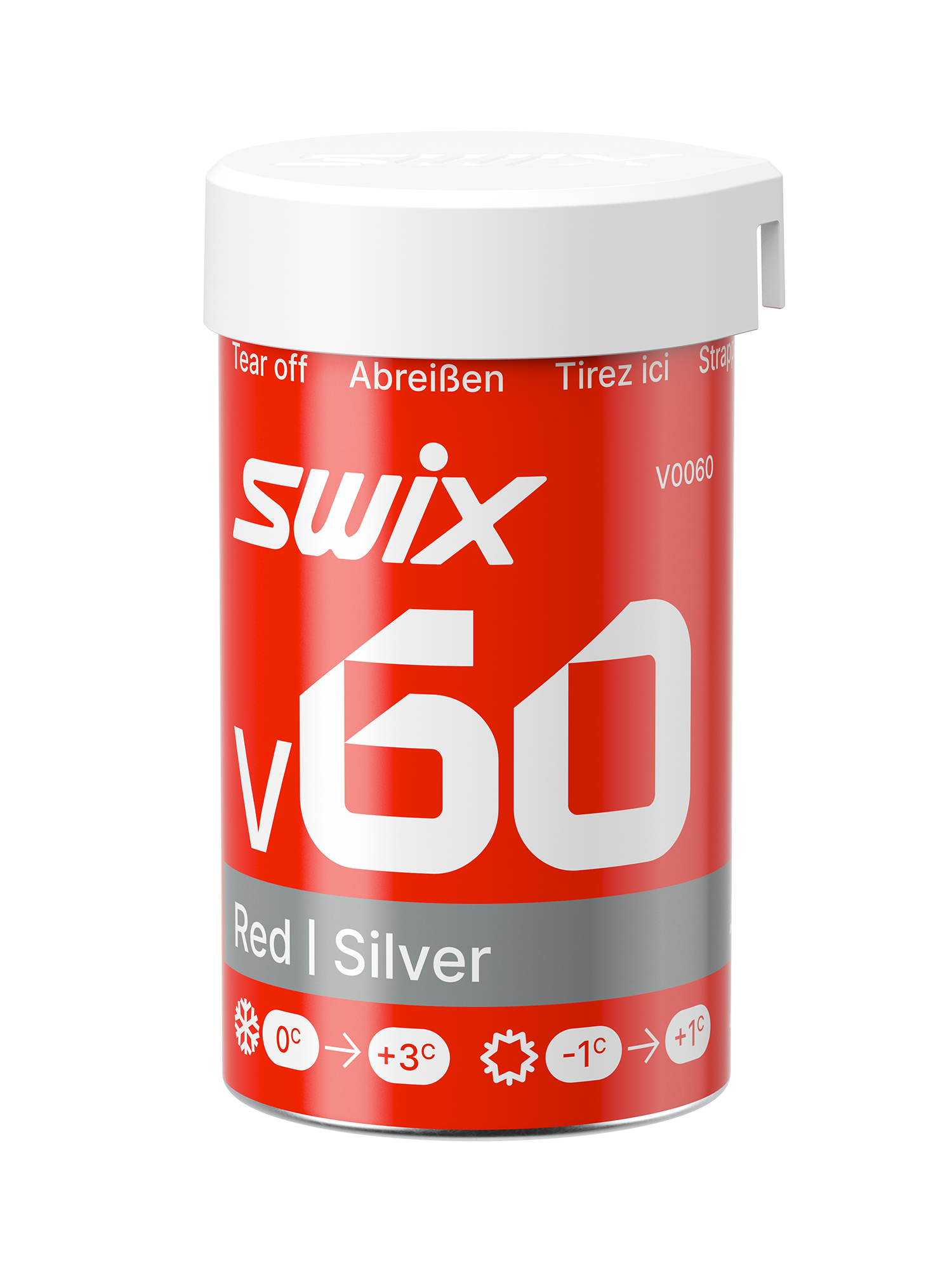 Swix V60 Red/Silver Hardwax er en festevoks som gir godt feste på mildt til varmt vinterføre. Perfekt opp til +3°C på fuktig eller kram nysnø, og ned til -1°C på eldre, grovkornet snø. Passer for både nyfallen snø fra +3°C til 0°C og gammel/omdannet snø fra +1°C til -1°C. Påfør flere lag når temperaturen stiger for optimal ytelse.