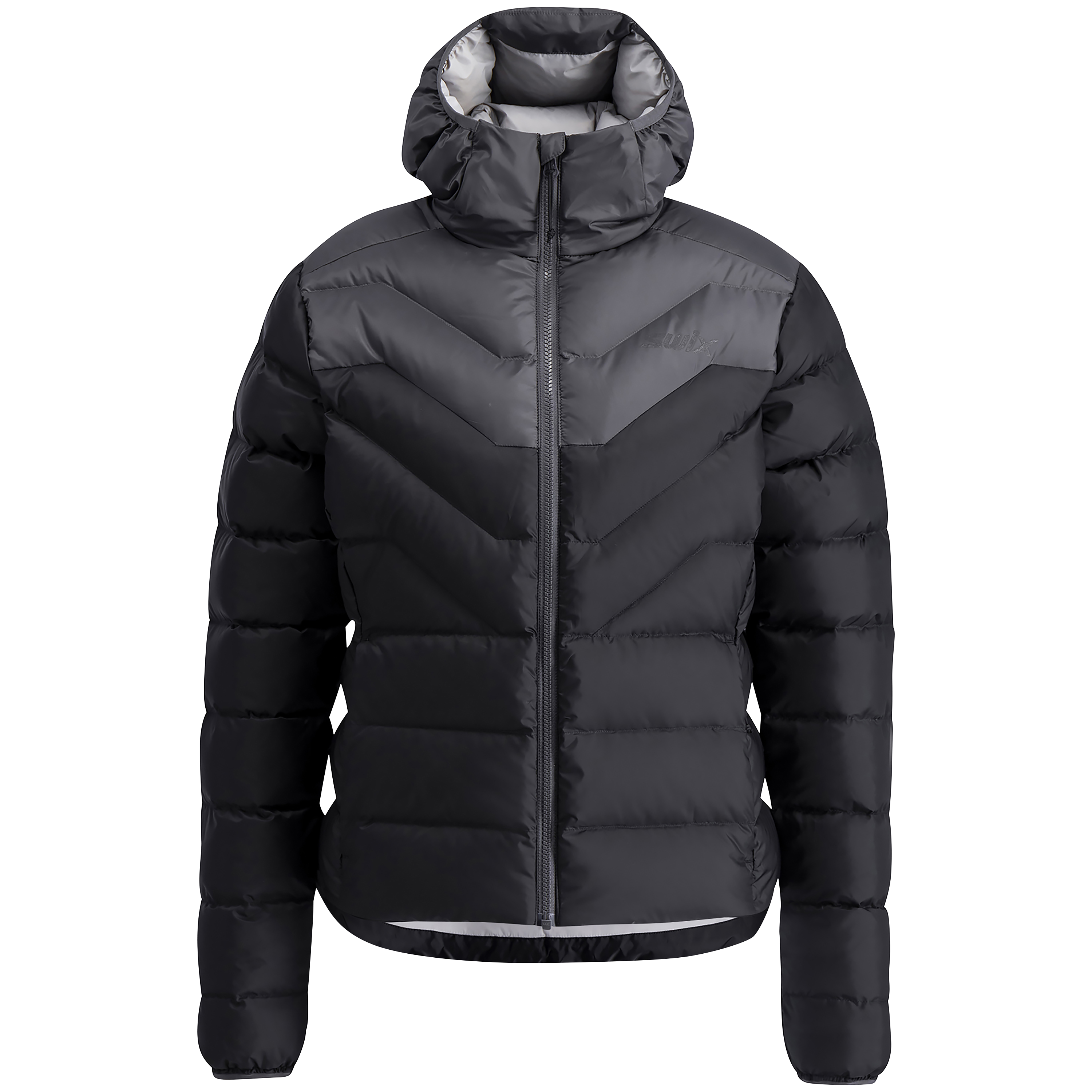 - Hel dragkedja fram med vindslå och hakskydd.