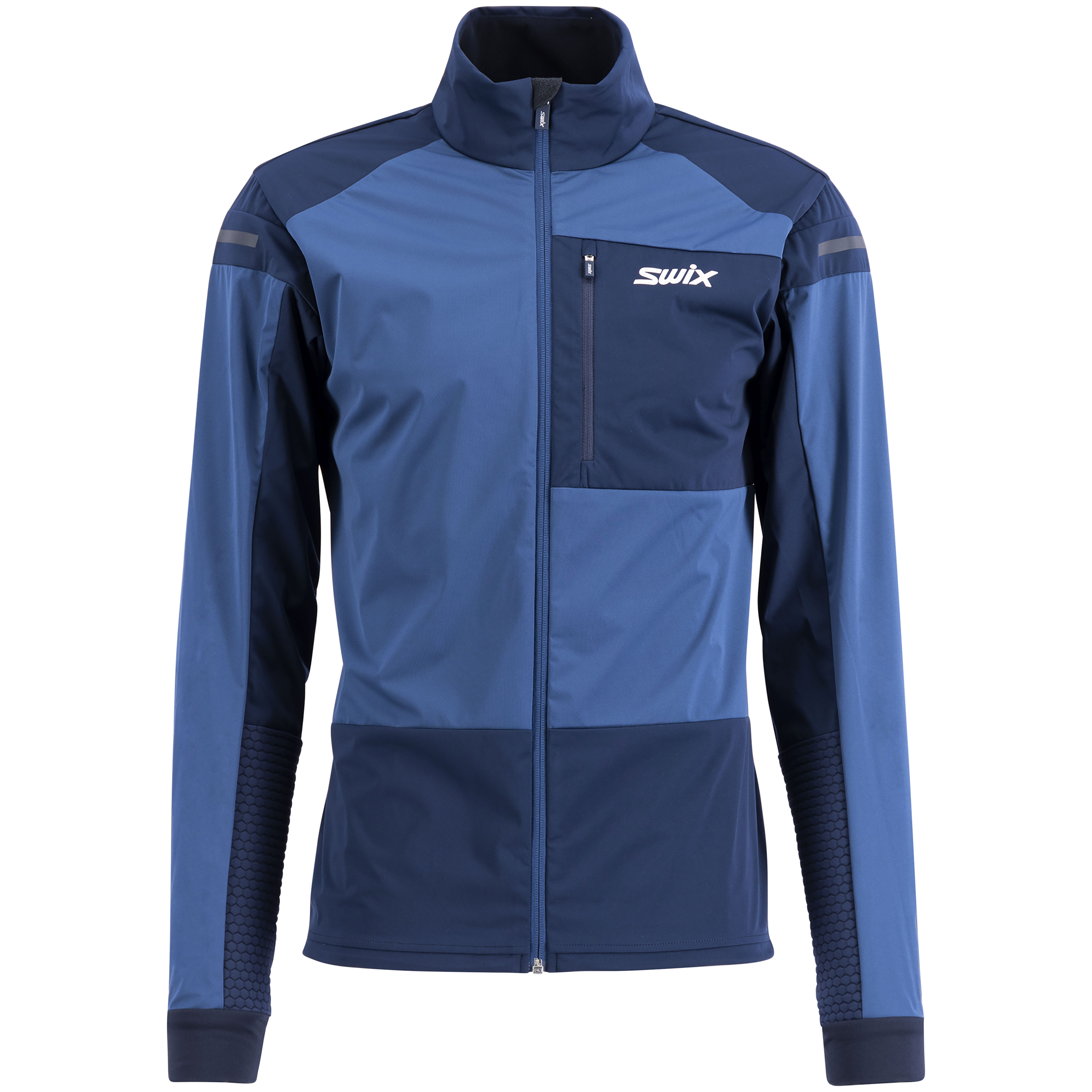 Nordic cross-country ski jacket är en mångsidig 3-lagers softshelljacka med ventilerande paneler för både avslappnade och mer intensiva sessioner. Huvudmaterialet är lätt och elastiskt. Innerkragen är fodrad med borstad lycra för extra värme. Elastisk dragsko i midjan ger en bra passform. Det är en allround skidjacka med reflexdetaljer, en bröstficka och en ficka på baksidan.