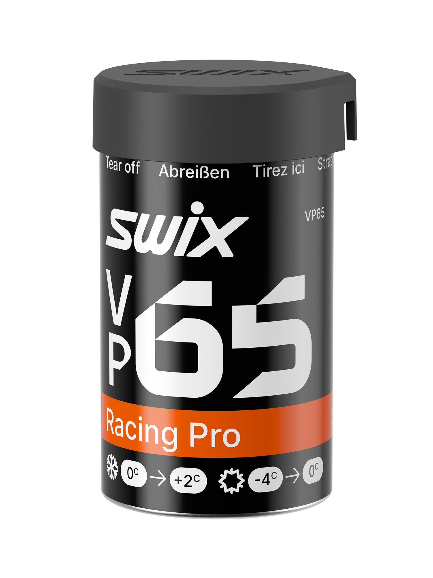För ny och relativt ny finkornig snö från 0 °C till 2 °C. Gammal/delvis transformerad snö från 0 °C till -4 °C. Röd/svart fästvalla med fantastiska egenskaper i svåra fören runt noll grader. Fungerar även bra på den kallare sidan i hög luftfuktighet och på transformerad snö. Den svarta tillsatsen garanterar stor flexibilitet och minskad risk för isansamling. VP65 fungerar bäst med ett par lager av lite hårdare valla som grund, och den fungerar också utmärkt för att täcka klister.