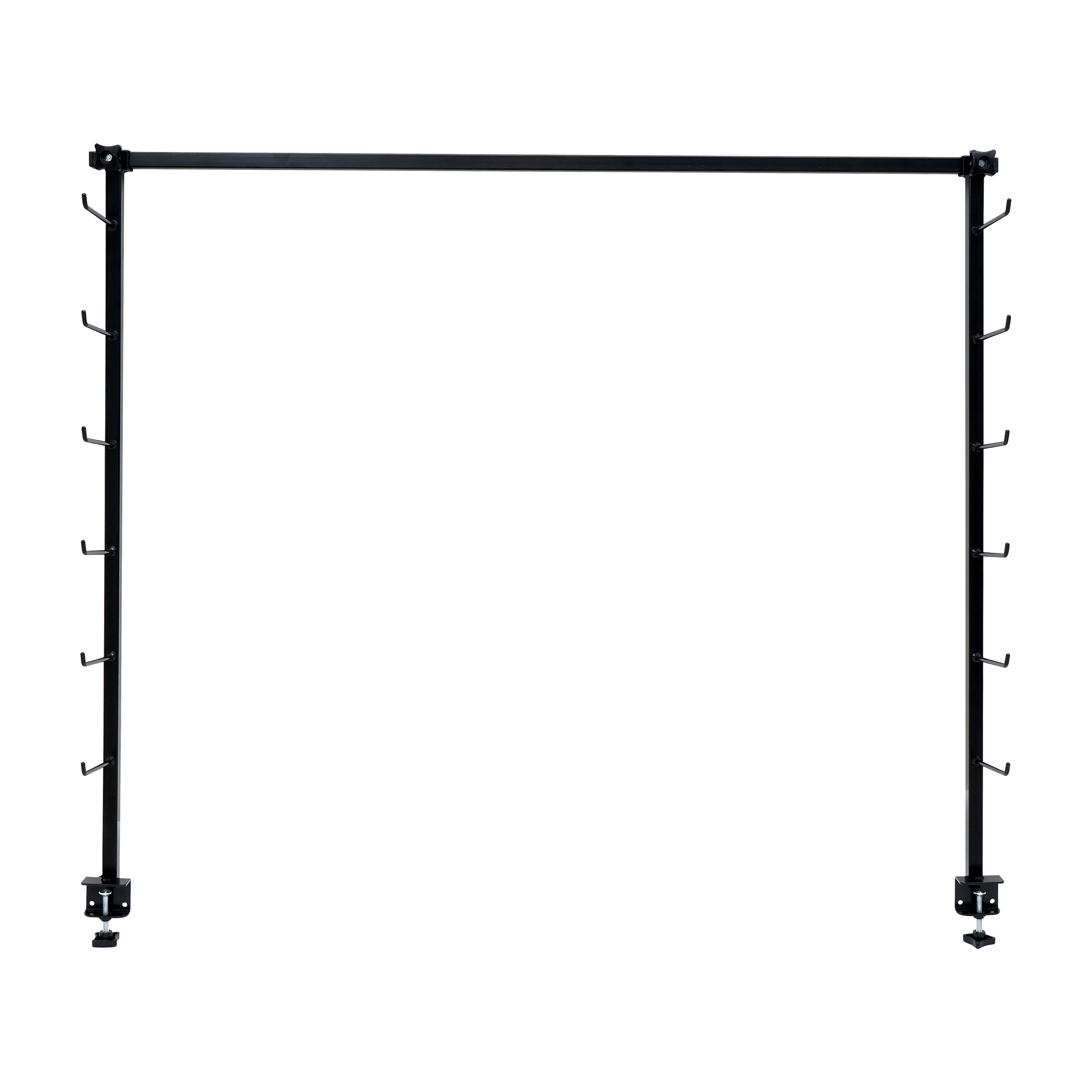 Skidställ för alpina och längdskidor. Använd den översta stången för att hänga upp beredningsutrustning med S-krokar.