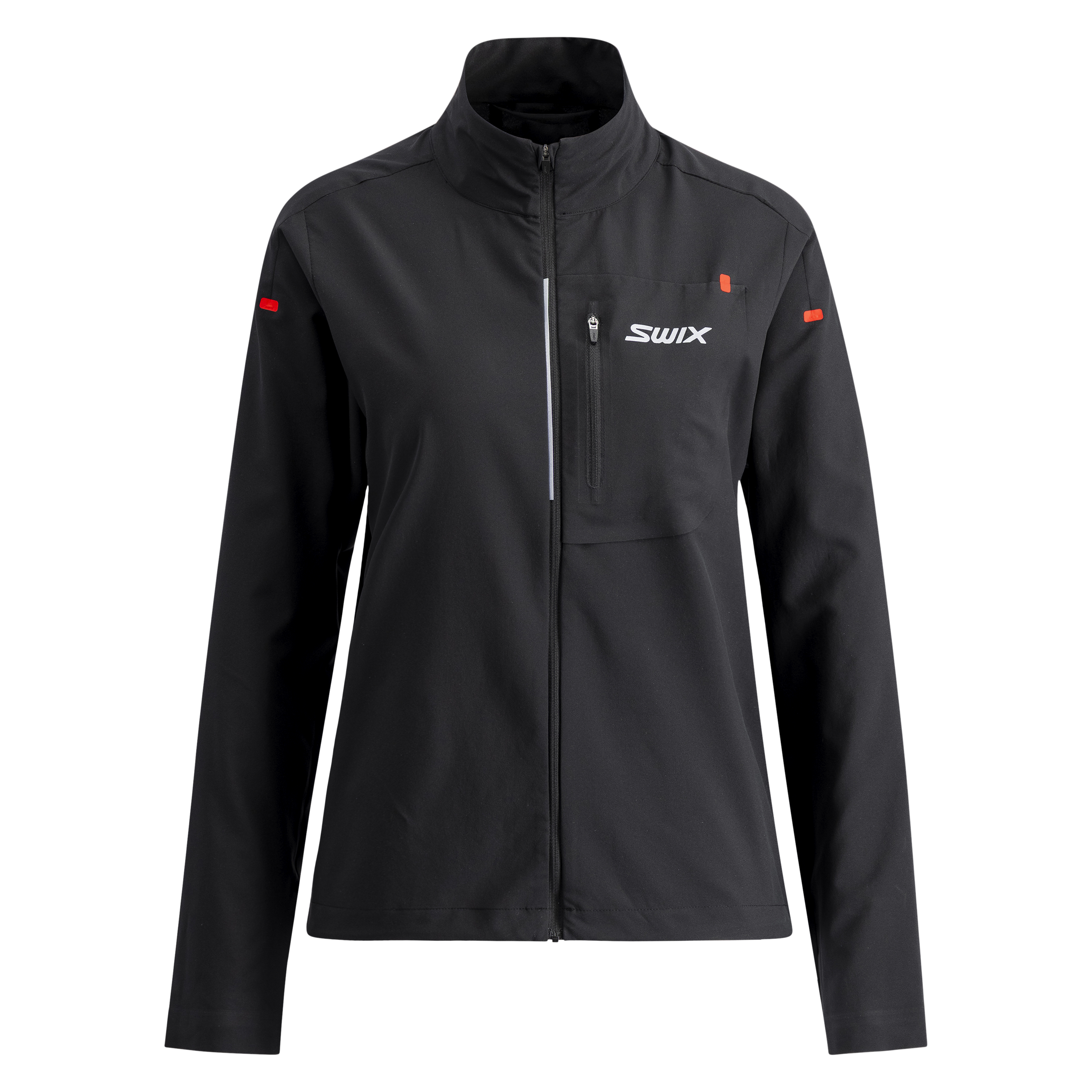 The Swix 30K Jacket Woman is built for all-season runners who need performance and protection in a sleek design. It features lightweight 4-way stretch fabric with a water-repellent DWR finish for full mobility and light weather resistance. A streamlined chest pocket adds secure storage without adding bulk. Articulated sleeves, bonded cuffs, a protective chin guard, and an adjustable hem provide a precise, comfortable fit. A top-tier technical jacket that balances movement, coverage, and style.