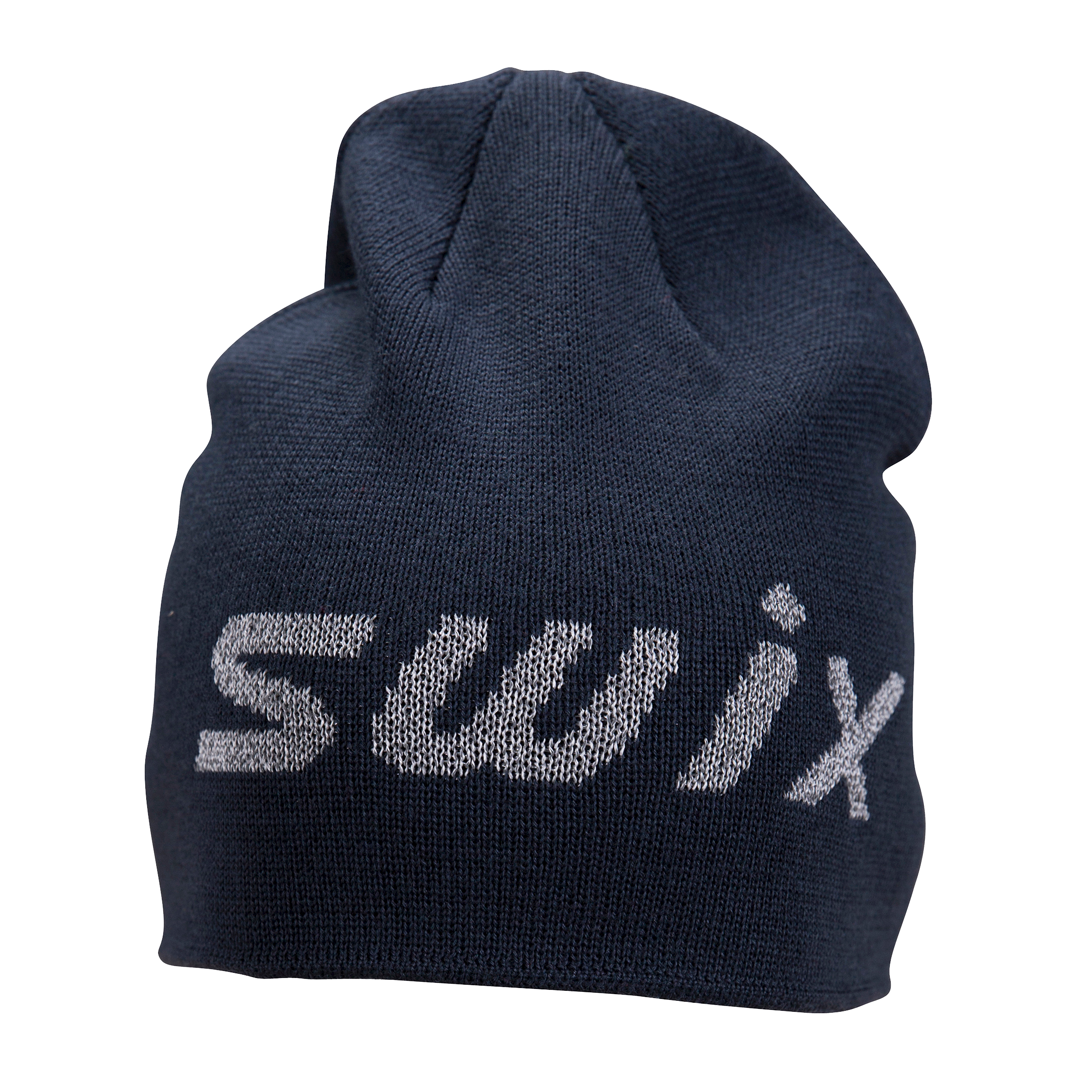 Swix Logo Beanie is a thick and warm hat that fits well on the head. The hat is made of 50% merino wool and is elastic. The blue hat features the Swix logo in 3M® reflective thread that lights up in the dark.