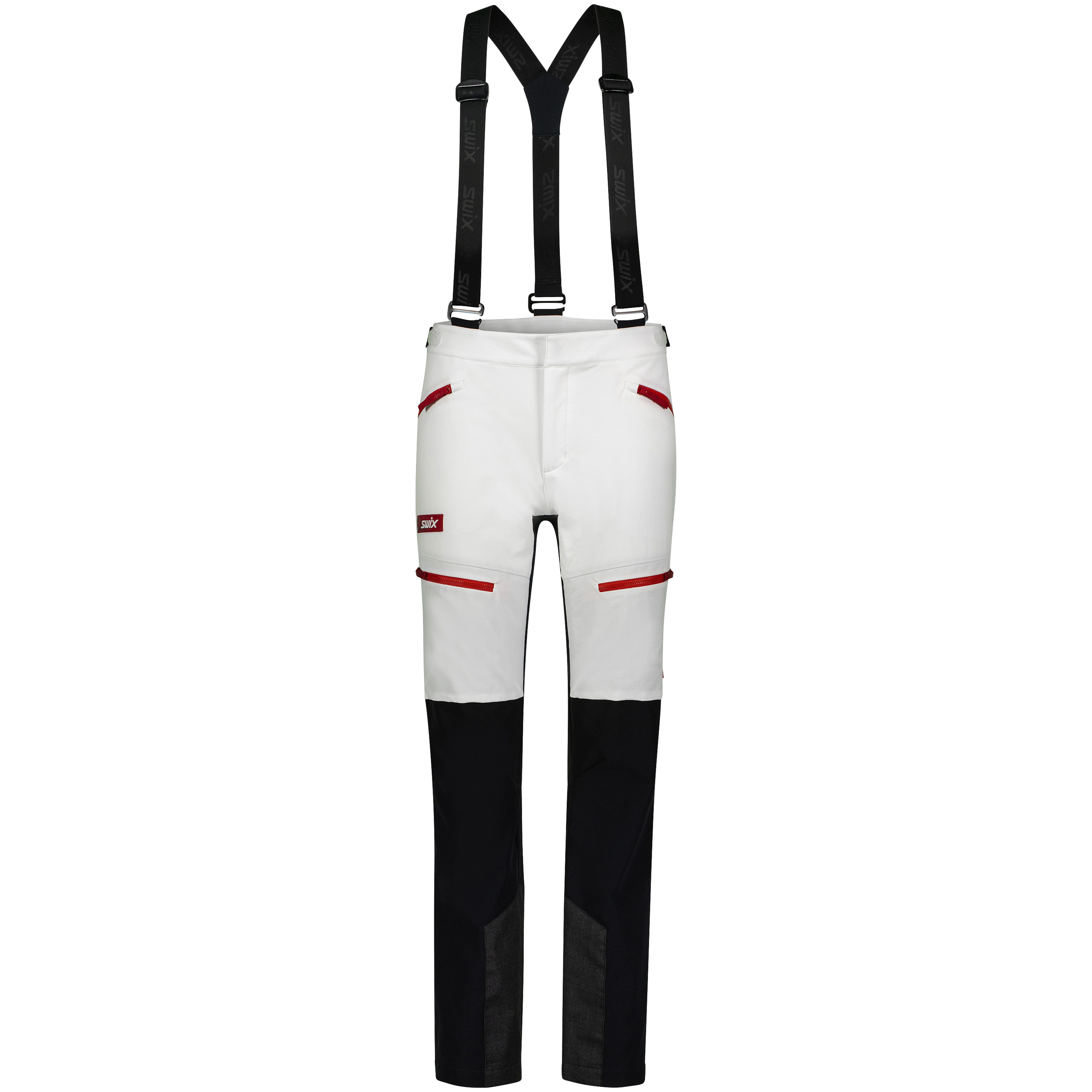 Surmount Soft Shell Pants are breathable stretch pants for high-intensity training on cold days. The outer fabric is wind- and water-resistant, and the inside is brushed to keep you warm. The pants have a zipper fly and detachable suspenders. The waist can also be adjusted with Velcro on each side. The knees are stitched for a flexible fit, and there is reinforcement fabric on the inseam at the bottom of the leg. The leg opening can be adjusted with snap buttons.