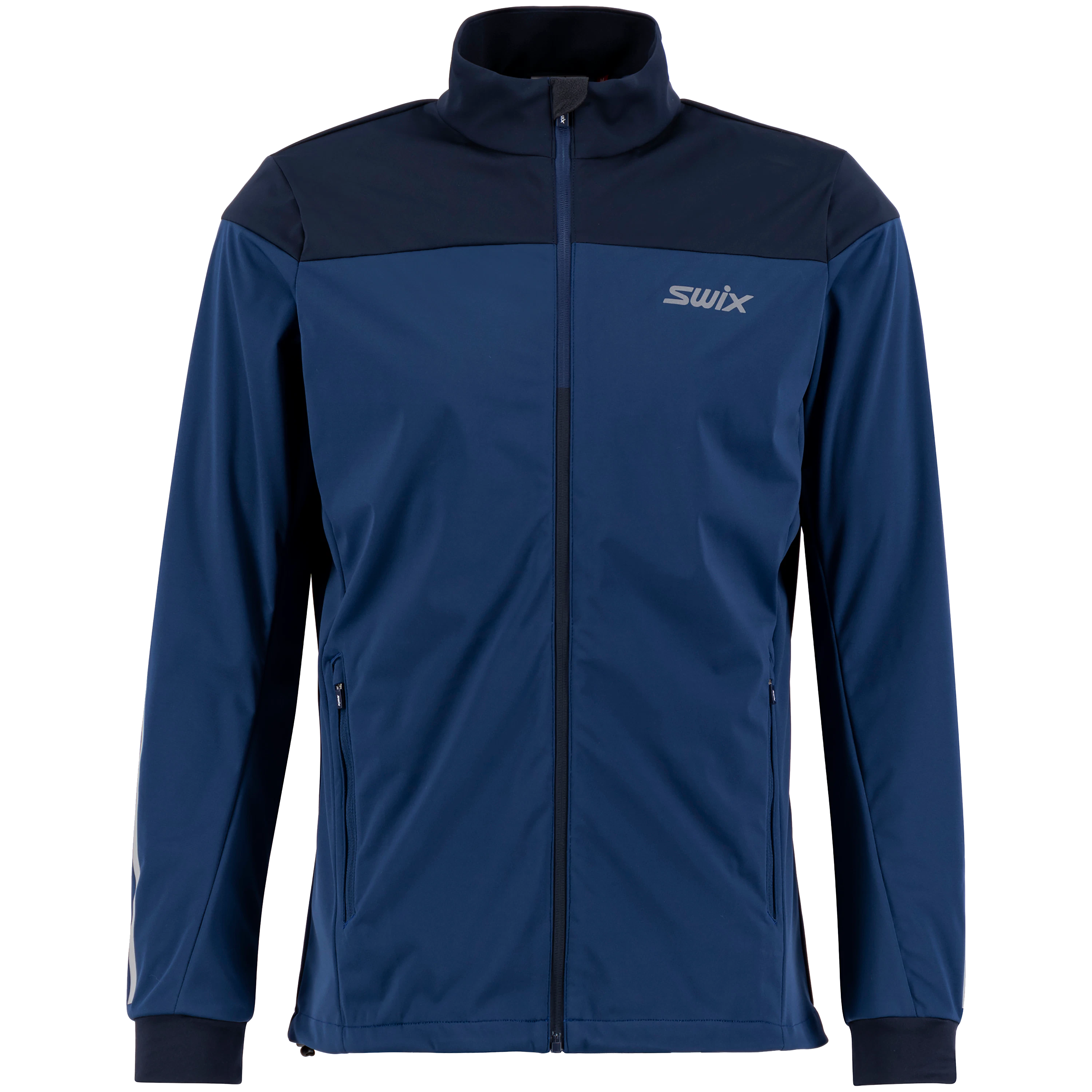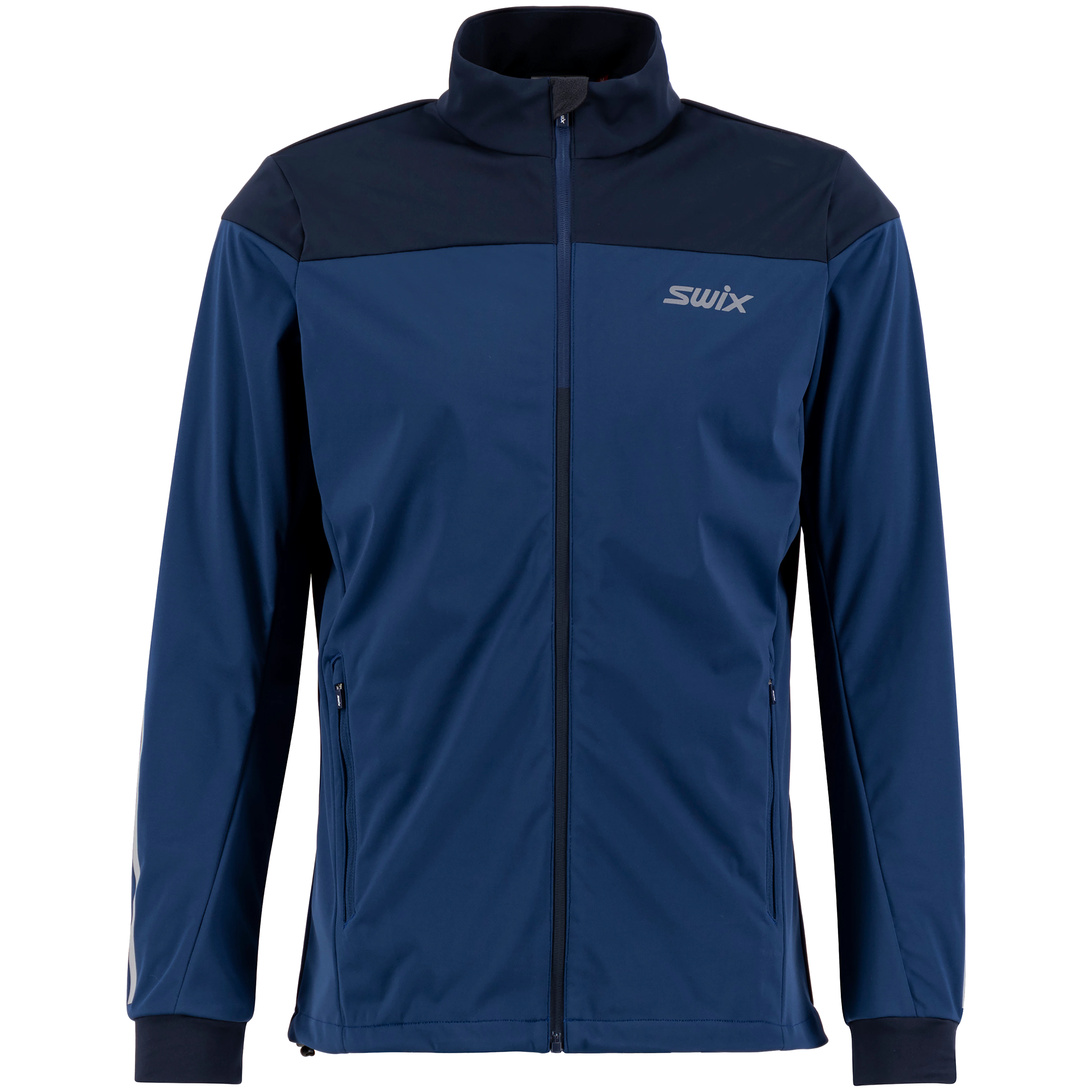 Cross Jacket is a comfortable softshell jacket with a classic, straight fit. It offers good mobility and is perfect for cross-country skiing, training, and hiking. The training jacket has a wind-resistant front panel and good ventilation under the arms and on the back. There are also reflective elements in the front and back for increased visibility.