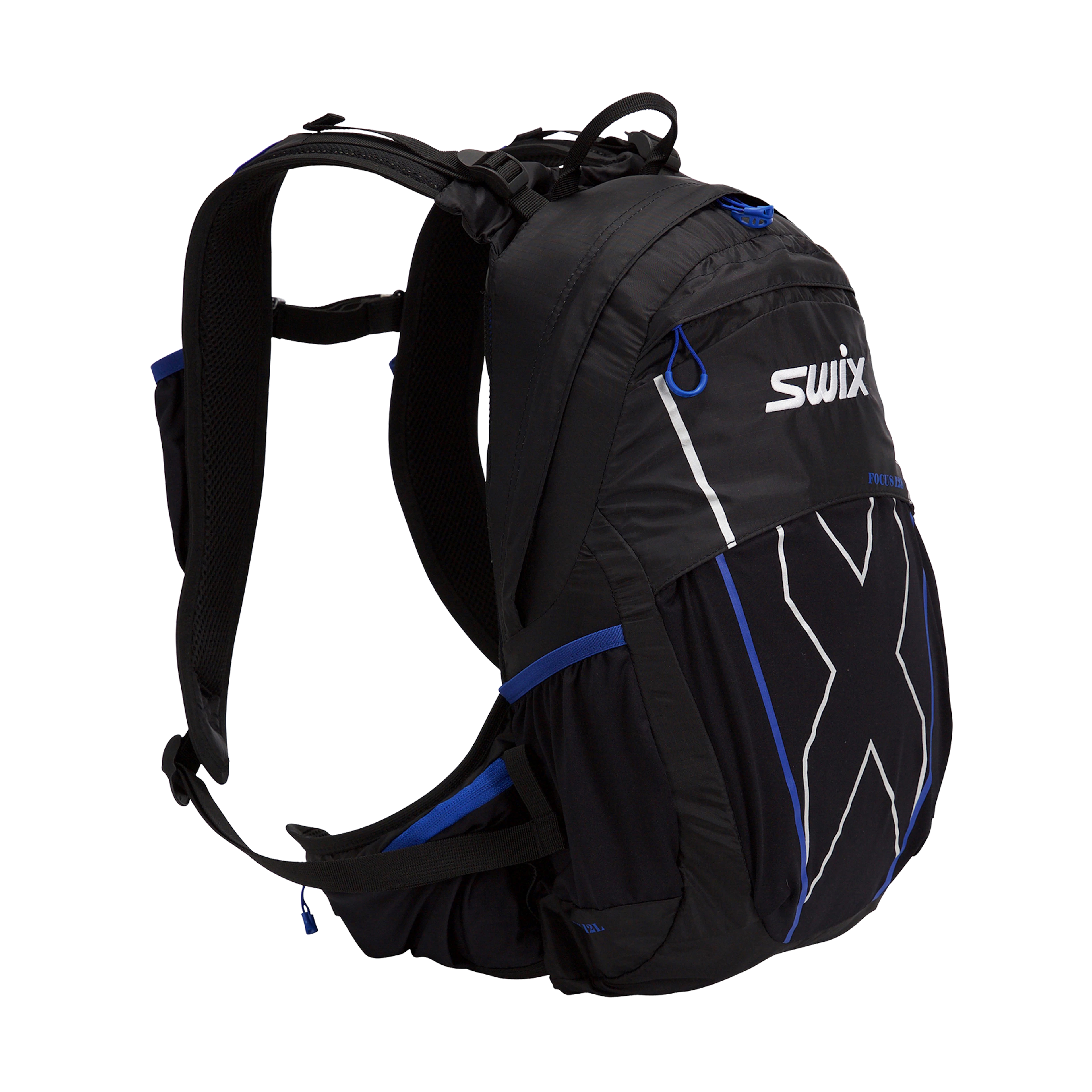 Focus Trail Pack is designed for comfort and versatility during intense training. The soft, breathable body-contact mesh provides a comfortable fit with minimal friction or bounce when fully packed with your gear. The fully equipped running vest has adjustable chest straps to provide a snug and stable fit. Elastic hydration pockets in the front with mesh can hold up to 500 ml and provide quick and easy access to gels, food, or drinks. A zippered harness pocket has space for a phone, money, or keys. The main fabric is nylon mesh with elastane.