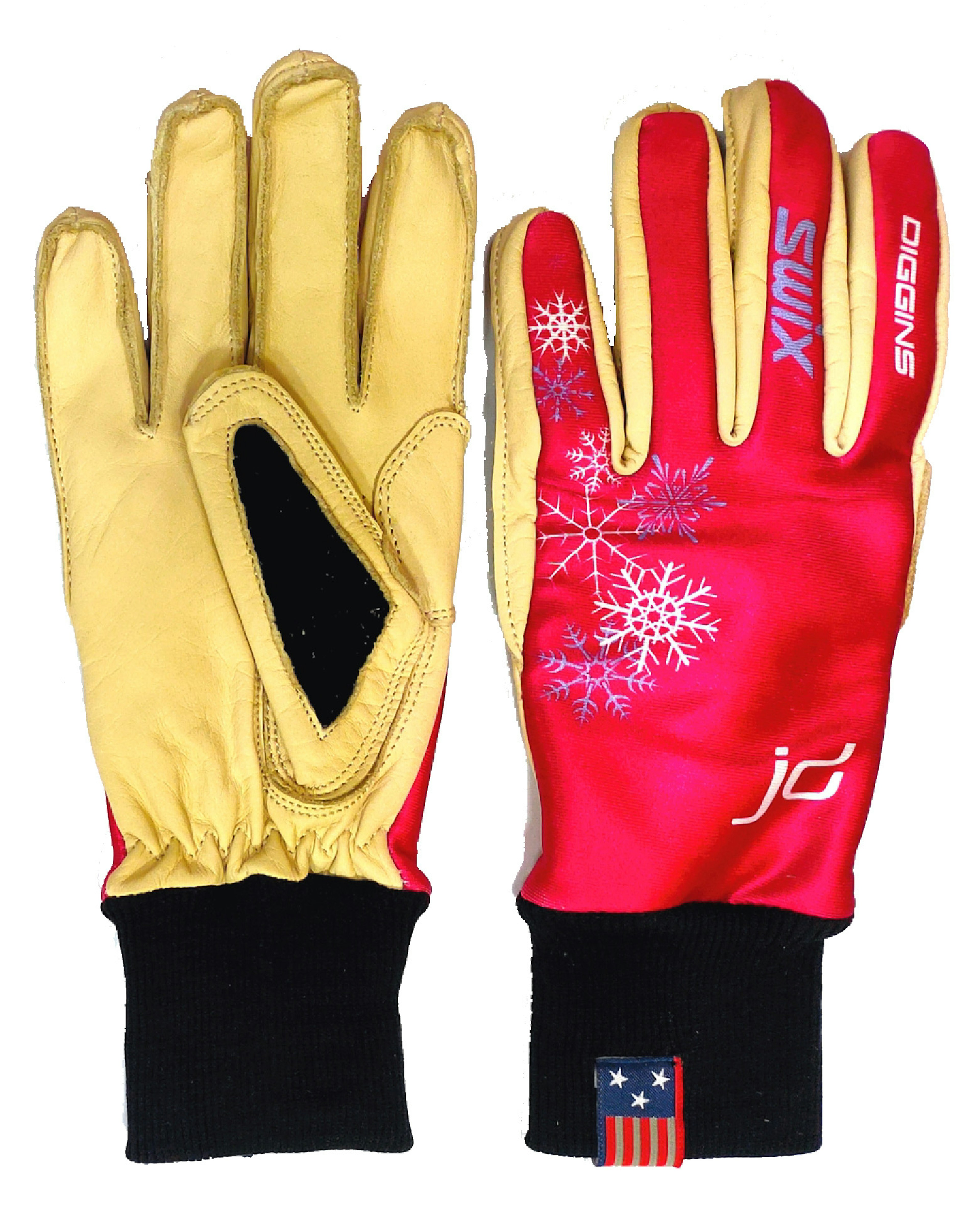 Celebrate U.S. gold with the Jessie Diggins Gold Pro Trainer Gloves, designed for ultimate performance and comfort. The insulated upper keeps your hands warm, while the all-natural leather palm ensures a durable grip in both dry and humid conditions. Articulated thumbs add flexibility and breathability, allowing you to move freely during intense training sessions. The extended Lycra cuff provides a secure fit with pole straps, and Lycra finger walls combined with terry wipe inserts enhance comfort. Train like a champion with gloves that are built for greatness.